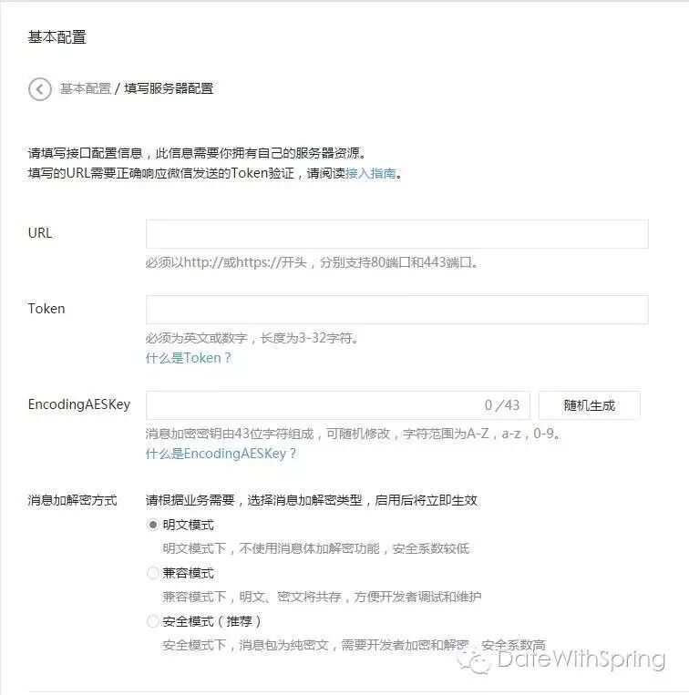 EncodingAESKey: 这个就随便填了,如果自己开发,可用它来验证消息是否来自于微信服务器