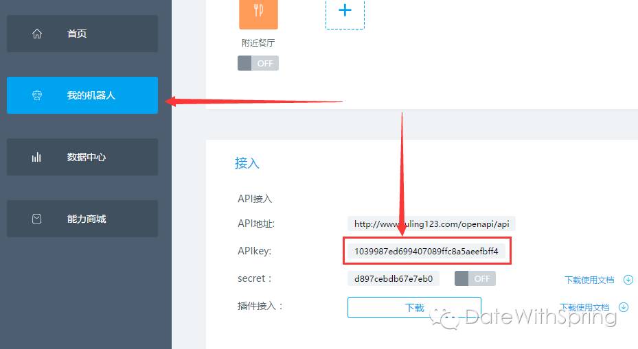 这里的{APIKey}就是上面那个图灵机器人的 APIKey