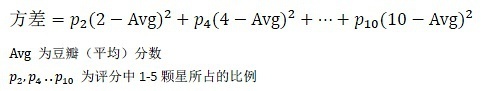 我们可以用方差来衡量评分分布的差异,计算方法如下