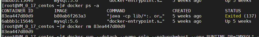docker run --detach --name solo --network=host --env RUNTIME_DB="MYSQL" --env JDBC_USERNAME="root" --env JDBC_PASSWORD="123456" --env JDBC_DRIVER="com.mysql.cj.jdbc.Driver" --env JDBC_URL="jdbc:mysql://127.0.0.1:3306/solo?useUnicode=yes&characterEncoding=UTF-8&useSSL=false&serverTimezone=UTC" .....