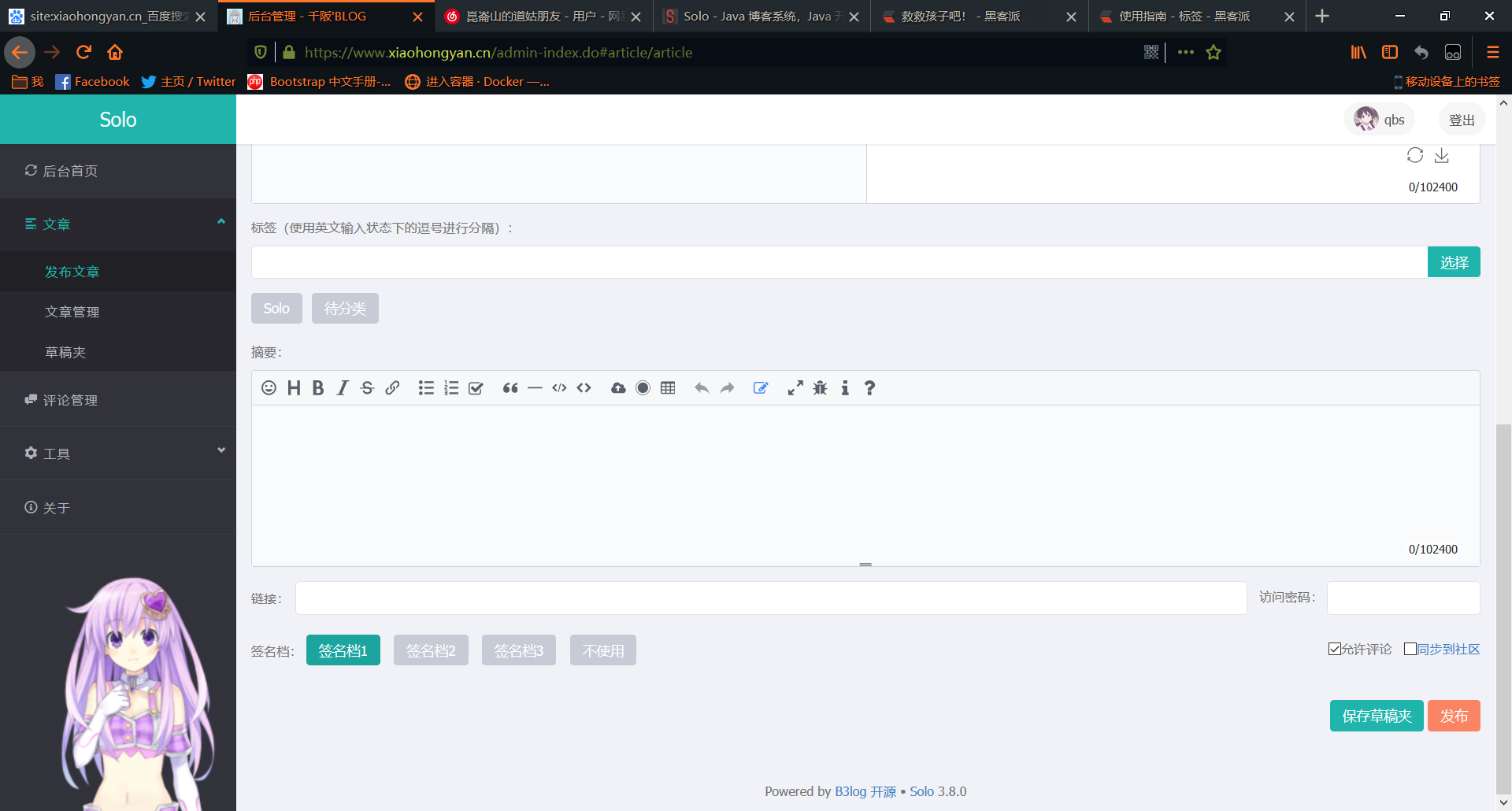 第一次接触 solo 和 docker,经过一个几个小时的折腾,终于配置好了。但是我在导航管理遇到了困难,恳请各位大佬帮助我,新建好了导航栏,但是打开出现 404 了,怎么去弄这个。还有怎么去设置内容的访问链接。😰
