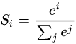 我们来看下它的数学表达式,假设我们有一个数组,?V,??Vi 表示 ?V 中的第 ?i 个元素,那么这个元素的 softmax 值就是: