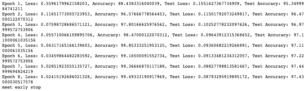 设定一个较大的 epoch,我们在模型训练的时候做了 early stop 策略。当训练精度小于上一次 epoch 的精度,我们认为模型进入了过拟合了。