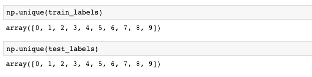 查看标签种类,我们可以看出标签表示了从 0~9 的数字,没有其他的错误数据。