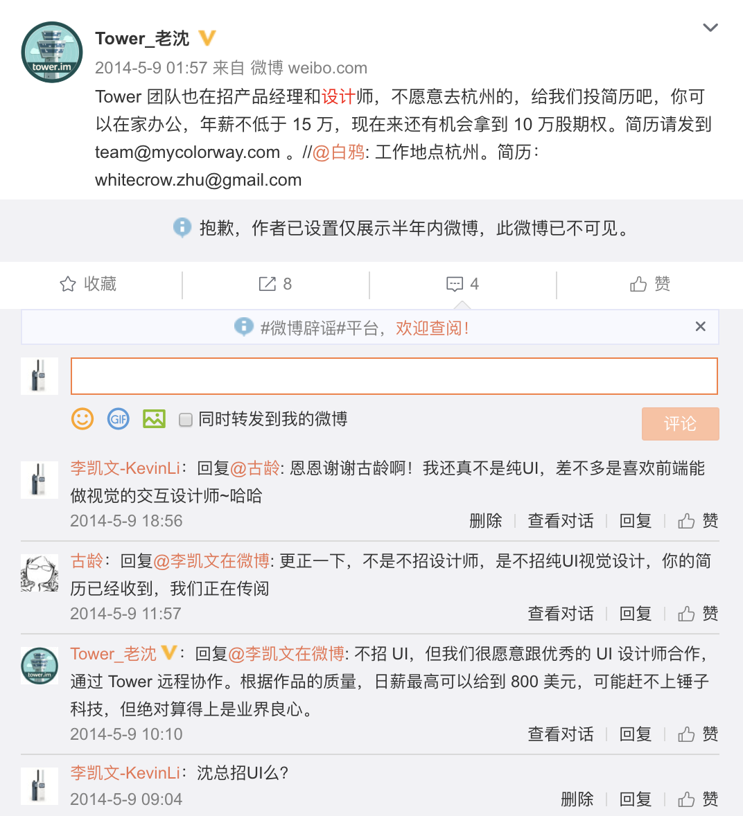 2. 微博 —— 连续靠微博找到远程工作
