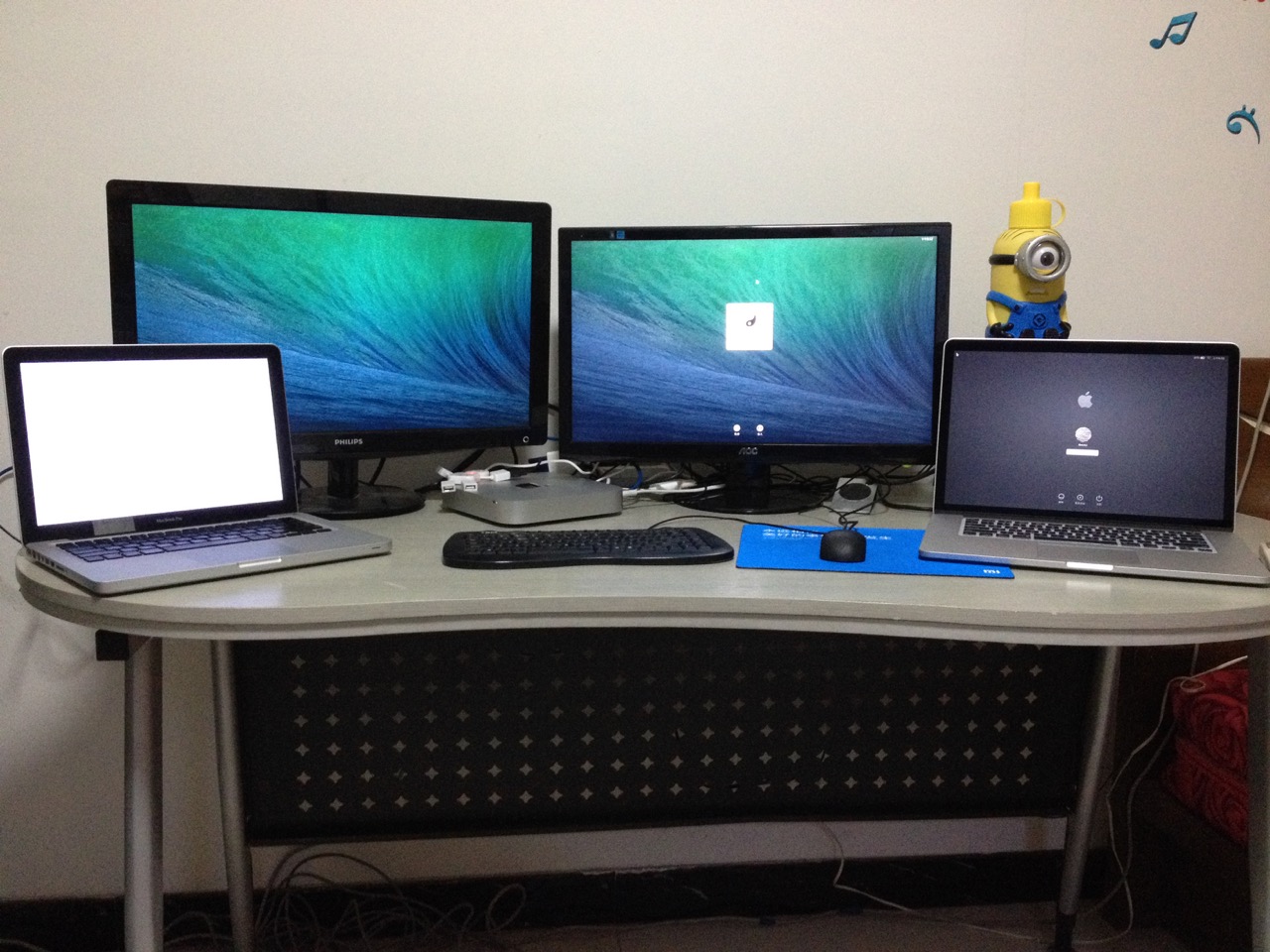 tower.im 就此成了我的第一份正式工作。我也实现了每天早上一翻身坐起来,迈半步做到桌前,No 通勤、no 刷牙、no 洗脸,就可以开始上班的生活方式。下图是我当年简陋但多屏的办公桌,右边就是床: