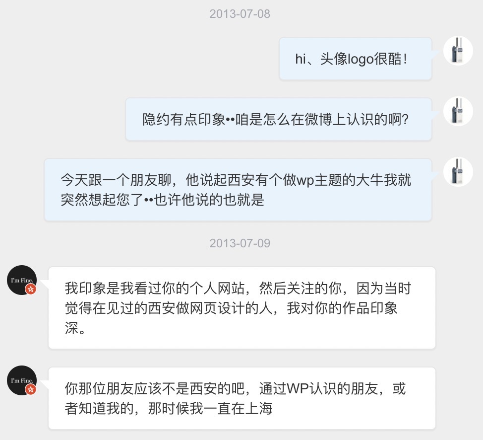 同时,我想起来之前在微博上关注过一个在西安的设计师,从发的一些内容来看很像是做这块的,会不会是同一个人呢。我就在微博上找出此人,并且直接给他发了私信留言。