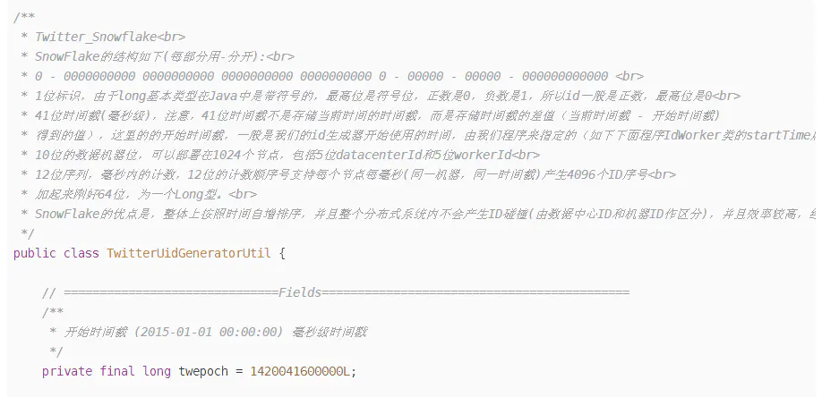 ①1 位标识:由于 long 基本类型在 Java 中是带符号的,最高位是符号位,正数是 0,负数是 1,所以 id 一般是正数,最高位是 0。