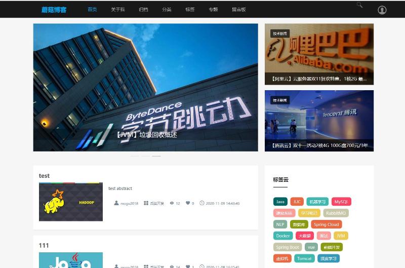 项目简介:蘑菇博客,一个基于微服务架构的前后端分离博客系统。前台使用 Vue + Element , 后端使用 spring boot + spring cloud + mybatis-plus 进行开发,使用 Jwt + Spring Security 做登录验证和权限校验,使用 ElasticSearch 和 Solr 作为全文检索服务,使用 Github Actions 完成博客的持续集成,文件支持上传七牛云。