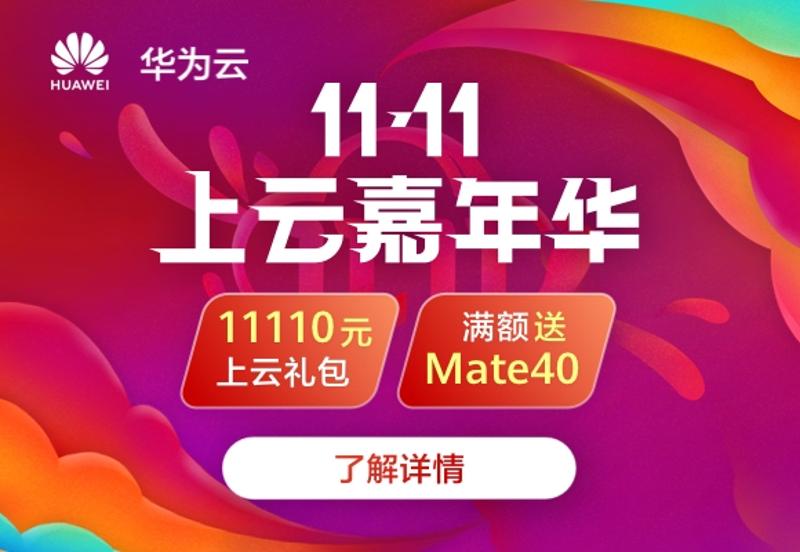 【华为云- 11.11 上云嘉年华,领 11110 元上云礼包丨满额送 Mate40】