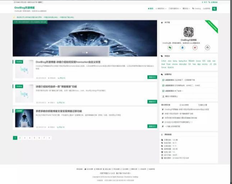 项目简介:OneBlog 一个简洁美观、功能强大并且自适应的 Java 博客。使用 springboot 开发,前端使用 Bootstrap。支持移动端自适应,配有完备的前台和后台管理功能。