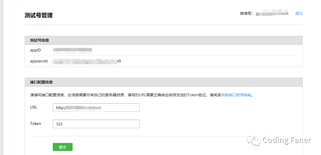 测试帐号的配置信息,根据页面信息,自己配置即可