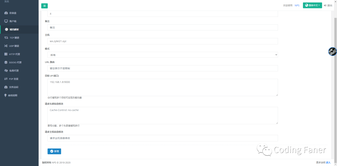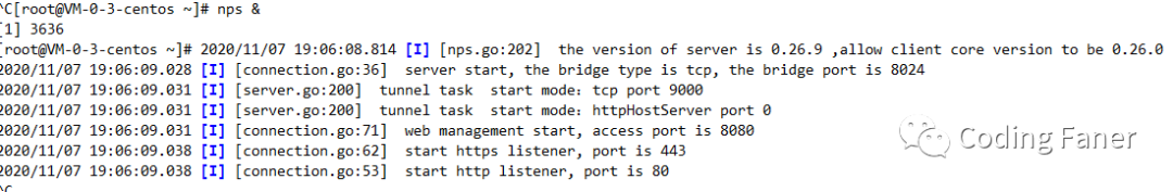 安装完成后服务端启动 nps nps 默认开启 80/443 进行域名解析