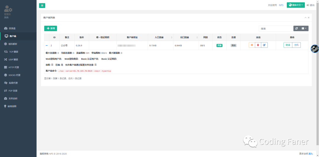 由于后台代码在本地,如果修改了内容需要部署到服务器上才能验证效果,非常不方便,因此可以使用 nps 代理本地网络。由于版本非常全,直接直接下载对应系统版本即可,我下载的版本如下:对应服务端和客户端的