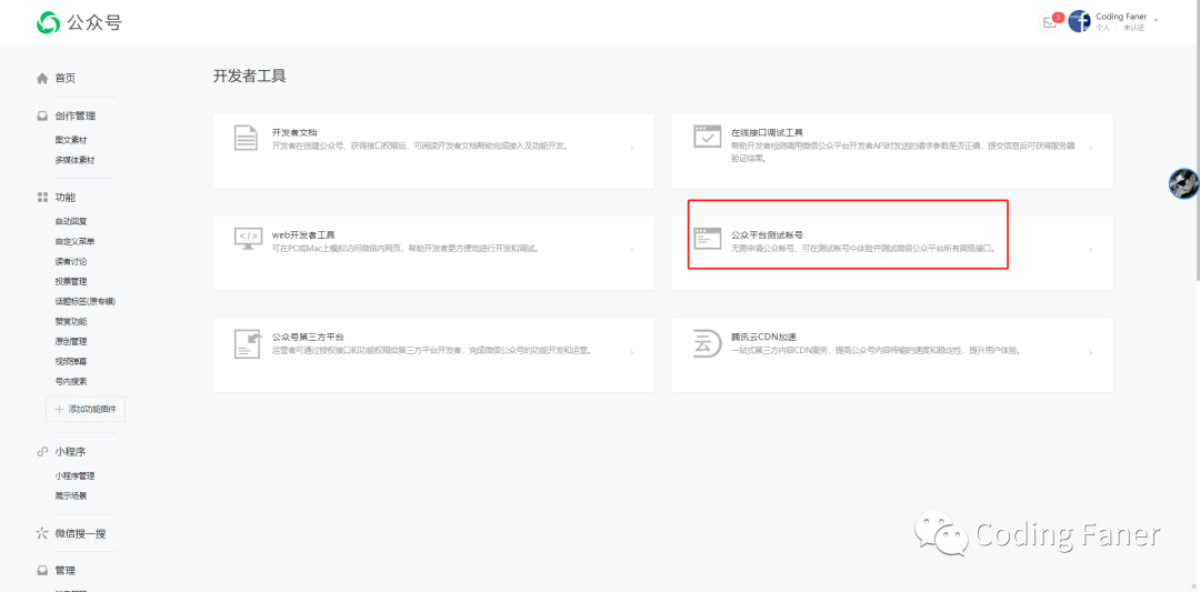 首先需要一个可供开发或测试的公众号,没有的话自行申请
