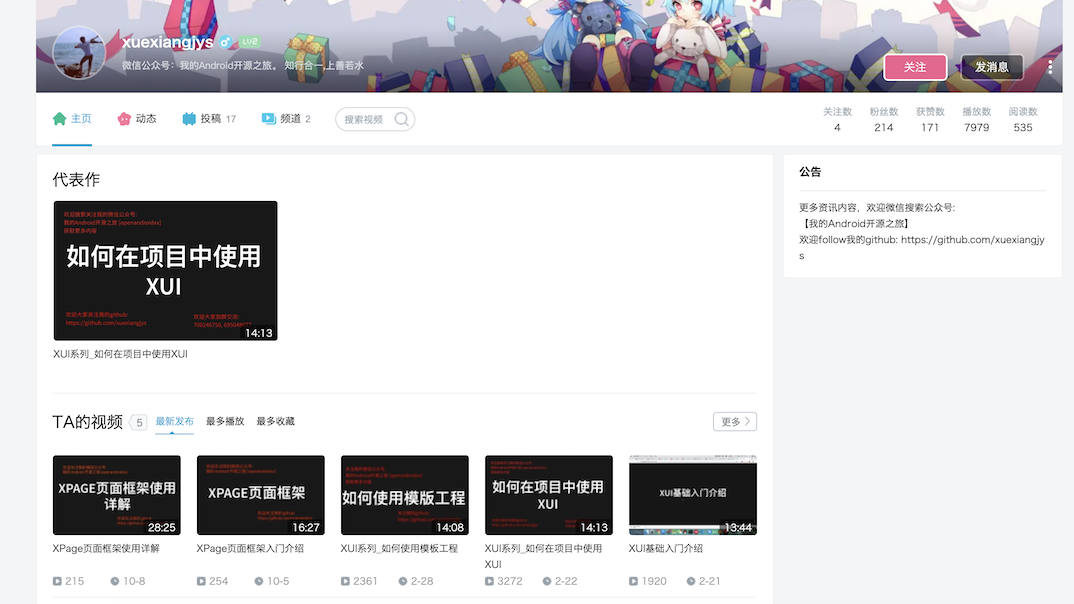 未来一年,我可能会针对我所开源的 X-Library 系列开源项目,做一个完整系列的教学视频,同时我还会在上面分享一些我平时开发的经验感悟给大家。感兴趣的可以关注我一波,记得三连支持一下哦!