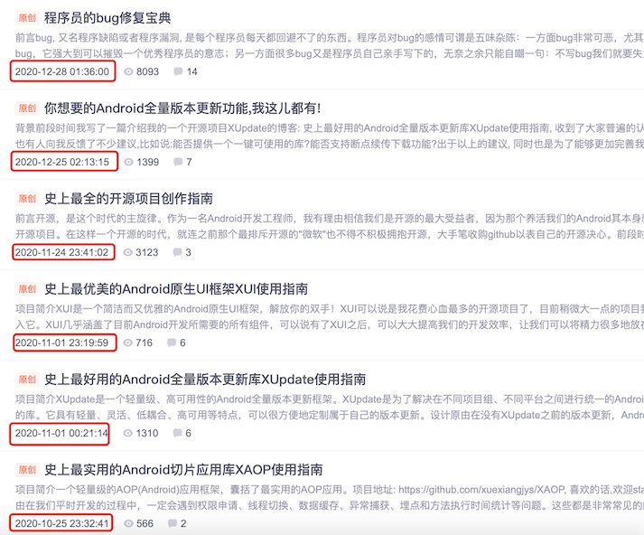 在这一年里,我的技术博客不再仅仅是局限于做技术的分享和开源项目的介绍,我还把我平时工作中的点点滴滴的经验总结出来,写出了几篇质量较高、思考程度较深的好文章: