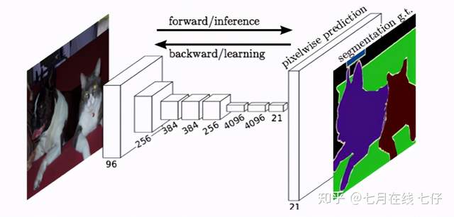 最后逐个像素计算 softmax 分类的损失, 相当于每一个像素对应一个训练样本。下图是 Longjon 用于语义分割所采用的全卷积网络(FCN)的结构示意图: