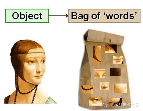 考虑将 Bag-of-words 模型应用于图像表示。为了表示一幅图像,我们可以将图像看作文档,即若干个“视觉词汇”的集合,同样的,视觉词汇相互之间没有顺序。