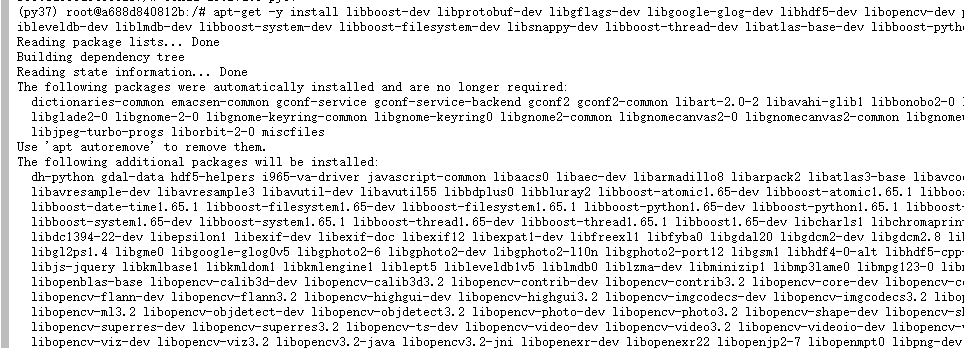 apt-get -y install libboost-dev libprotobuf-dev libgflags-dev libgoogle-glog-dev libhdf5-dev libopencv-dev protobuf-c-compiler protobuf-compiler libopenblas-dev libhdf5-dev libleveldb-dev liblmdb-dev libboost-system-dev libboost-filesystem-dev libsnappy-dev libboost-thread-dev libatlas-base-dev libboost-python-dev