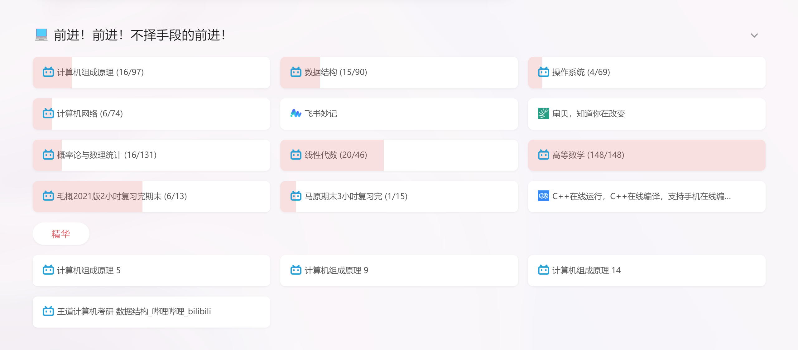 记录在哔哩哔哩大学的学习进度