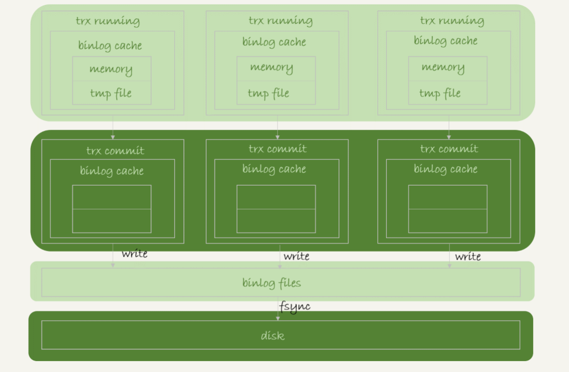 - 事务执行过程中先把日志写到 binlog cache ,事务提交的时候再把 binlog cache 写入到 binlog 文件中
