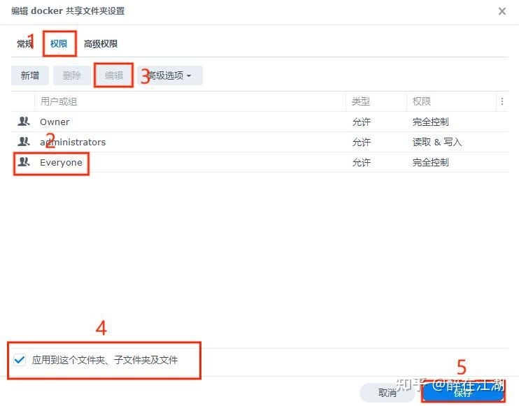 我也不是很懂哈,楼主可以看下这个帖子。是不是把 everyone 的权限改为读取就行了?然后启动 docker 思源用 guest 账号。