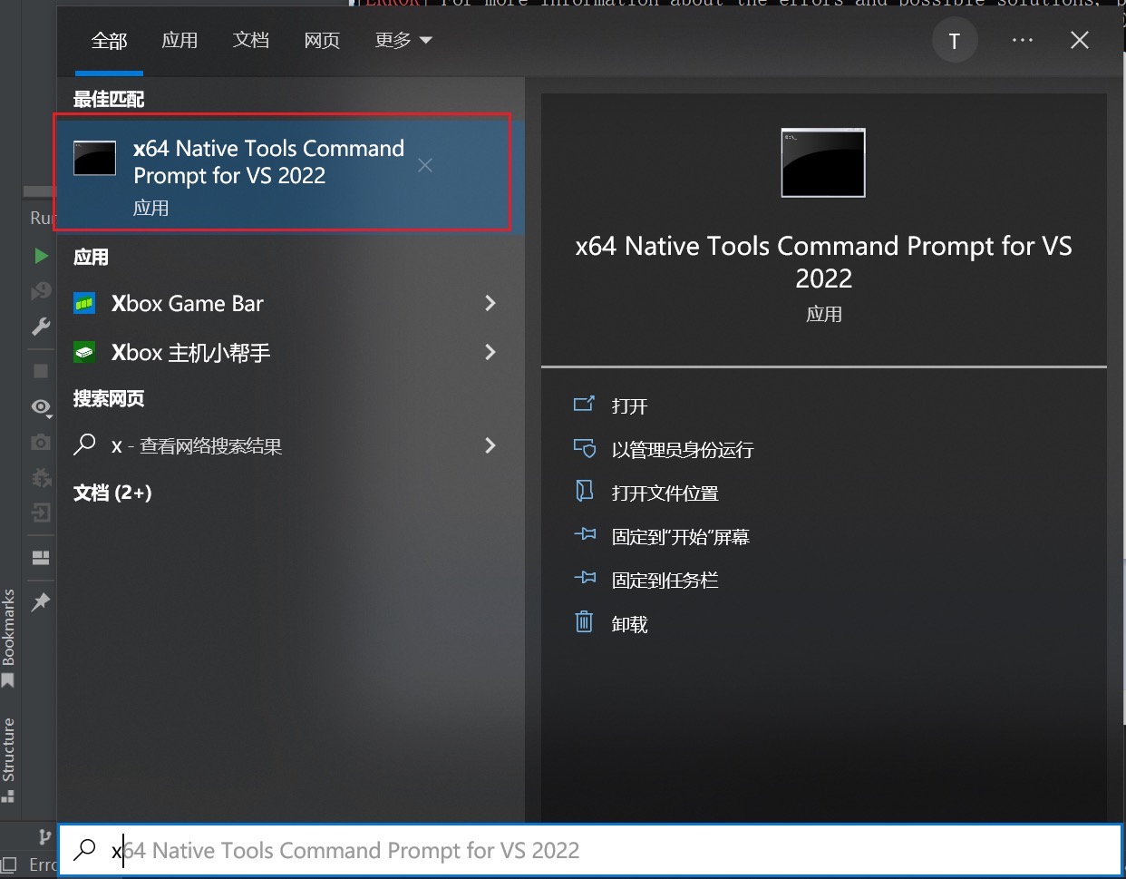 现在接近尾声了,从你的 windows 搜索窗口,打开 Native Tools Command Prompt ,然后进入到你的项目路径。