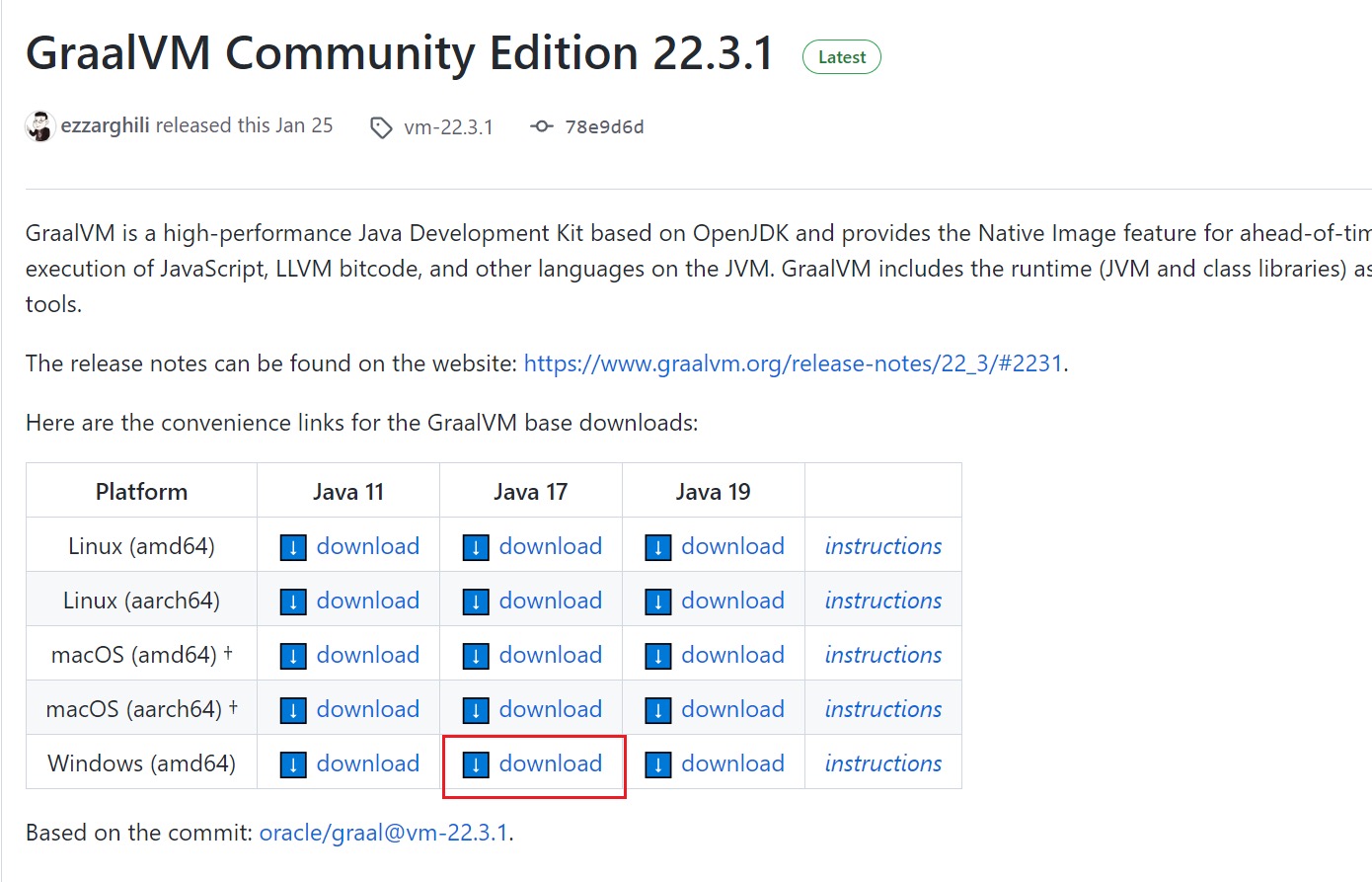 下载界面:https://github.com/graalvm/graalvm-ce-builds/releases/tag/vm-22.3.1