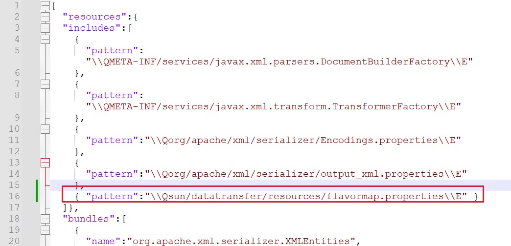 添加一行:{ "pattern":"\\Qsun/datatransfer/resources/flavormap.properties\\E" }