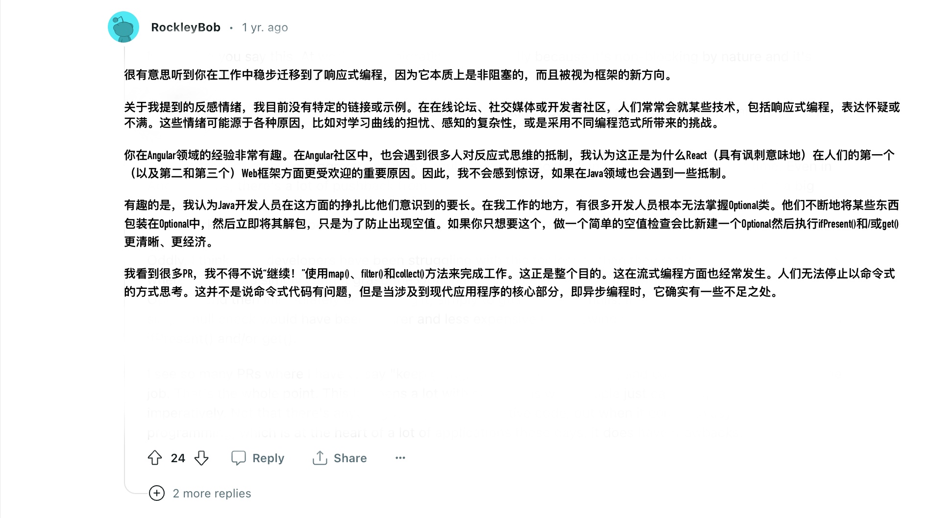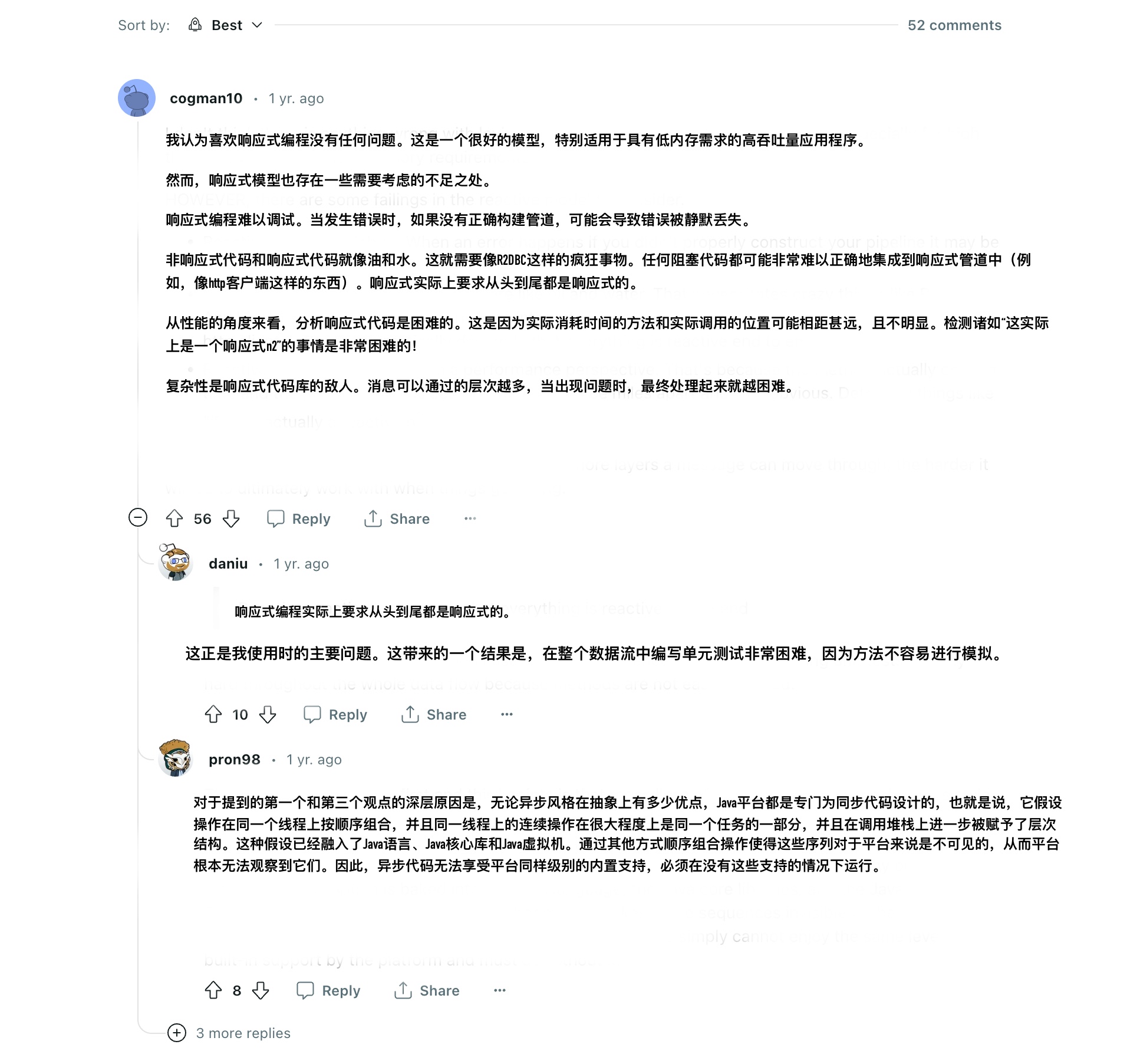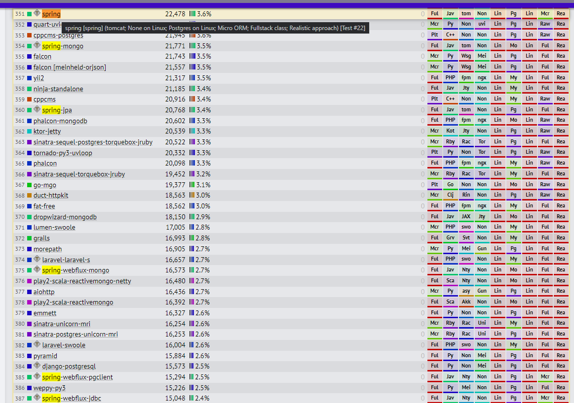 在上面的比较结果中,似乎 WebFlux 落于下风,没有带来更好的性能,以及在 TechEmpower 的测试上 webflux 排名已经到了 375,但是我在 Reddit 上又找到了一些不一样观点。