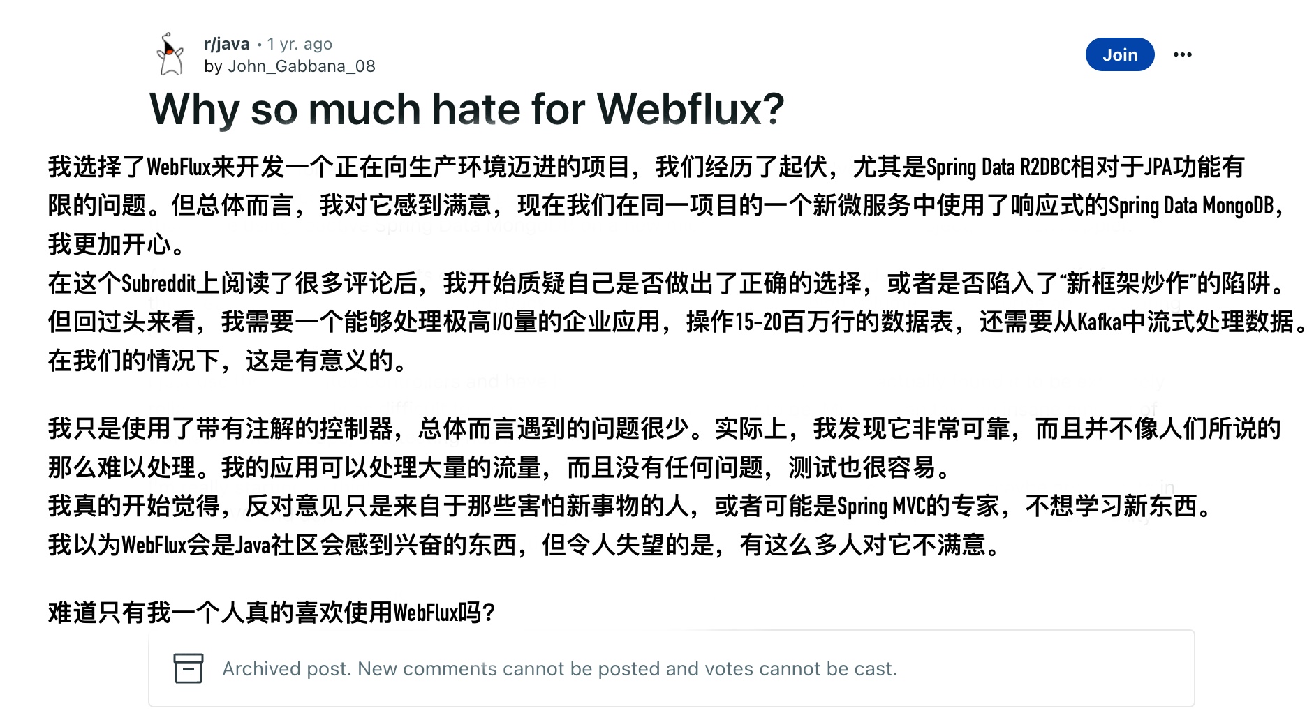 原帖:Why so much hate for Webflux?