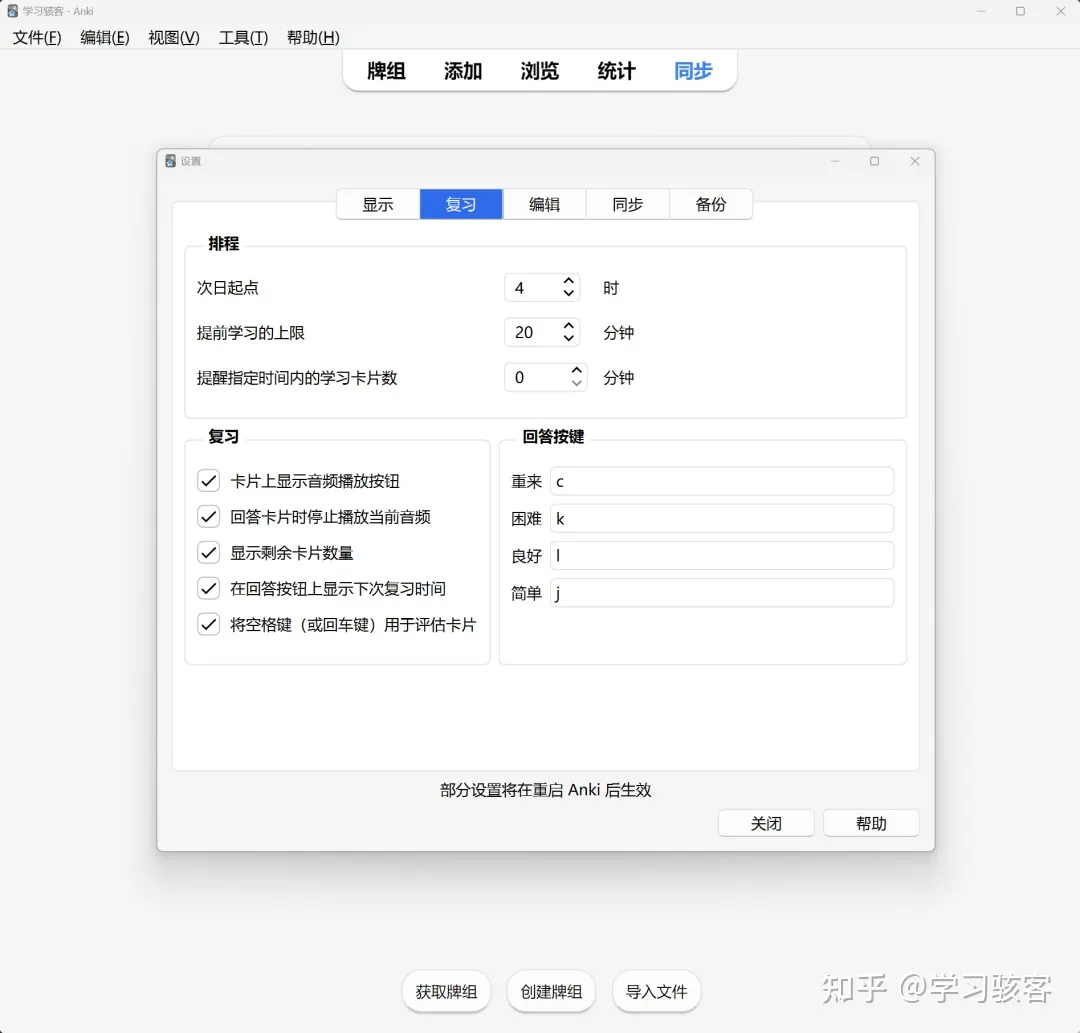 当“提前学习的上限”设置了默认的 20 分钟时,复习时的 20 分钟、10 分钟间隔都会紧接着其他笔记出现,这是为了方便集中复习完所有笔记。反之,如果你把这个设置项改为 0,那么间隔 10 分钟的笔记就只会在 10 分钟后出现,相应地你就要频繁打开 Anki。