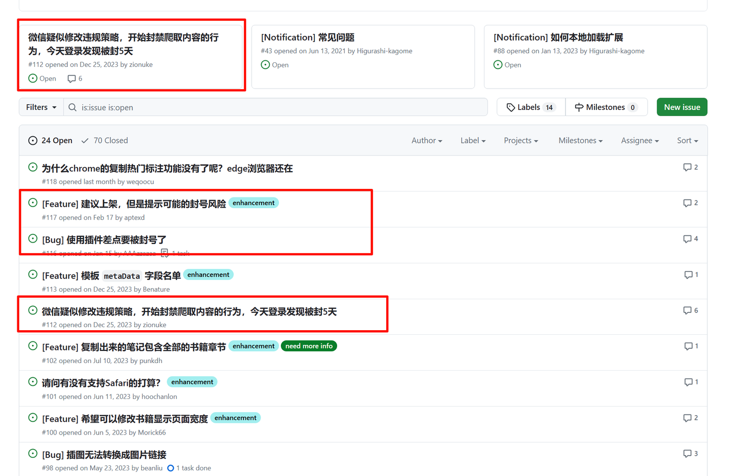 在 obsidian-weread-plugin repo 里,我是看到了也有人被封禁的 issue。