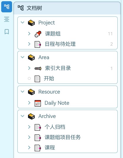 - Archive·归档:已完成的 Project、不活跃的 Area、不感兴趣的 Resource。