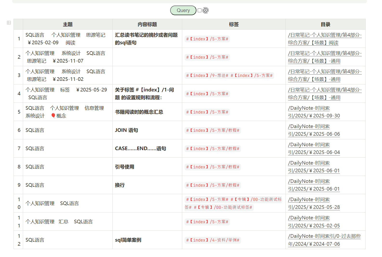 ℹ️ 这个查询方案需要 搭配 Query 挂件 和 下面的笔记结构 使用