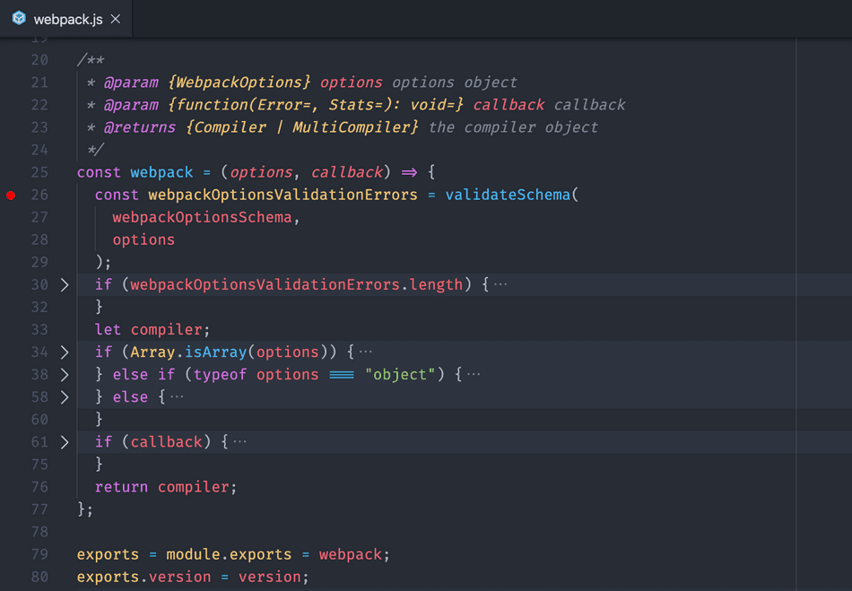 随着 Webpack CLI 载入 Webpack 核心模块,整个执行过程就到了 Webpack 模块中,所以这一部分的代码需要回到 Webpack 模块中,这里分析的是 v4.43.0 版本的 Webpack,可参考这个版本的源代码的固定链接(opens new window)。