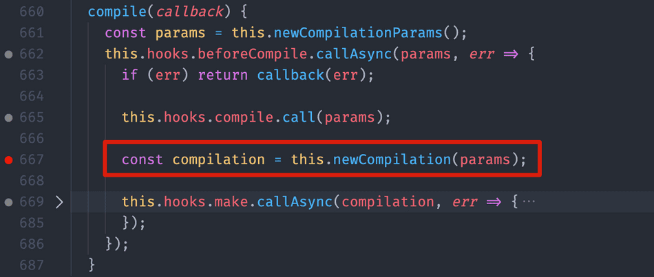 compile 方法内部主要就是创建了一个 Compilation 对象,这个对象我们在插件机制(opens new window)中有提到,Compilation 字面意思是 "合集",实际上,你就可以理解为一次构建过程中的上下文对象,里面包含了这次构建中全部的资源和信息。